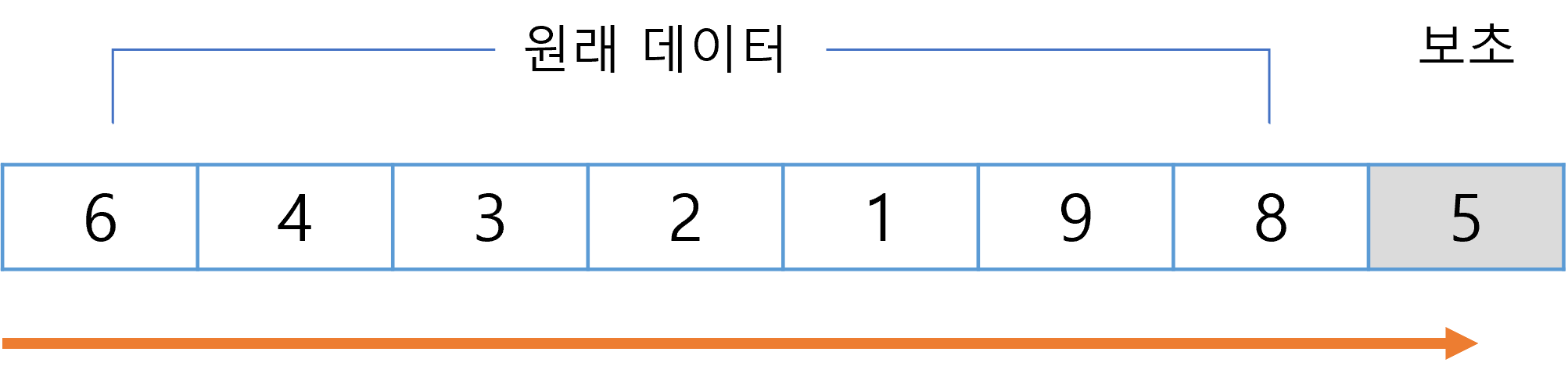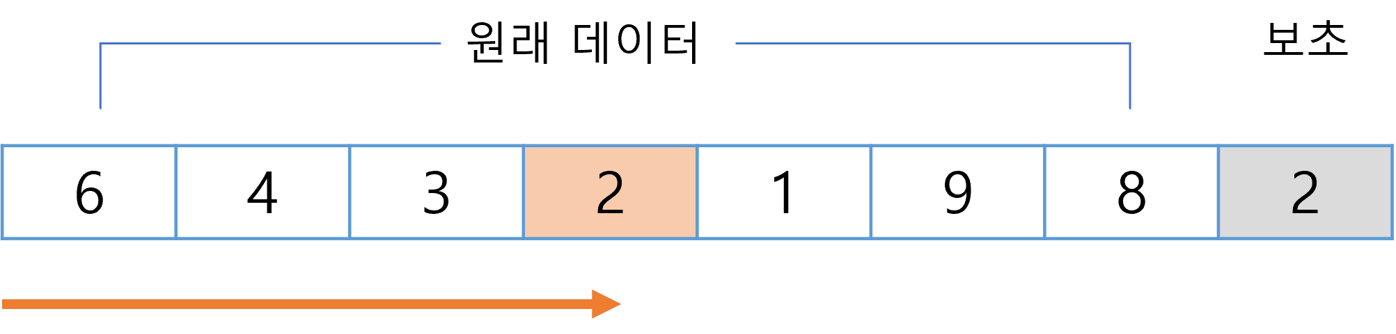 위 그림에서와 같이 보초법은 검색하고자 하는 key값을 원래 데이터 배열 끝에 추가한다.