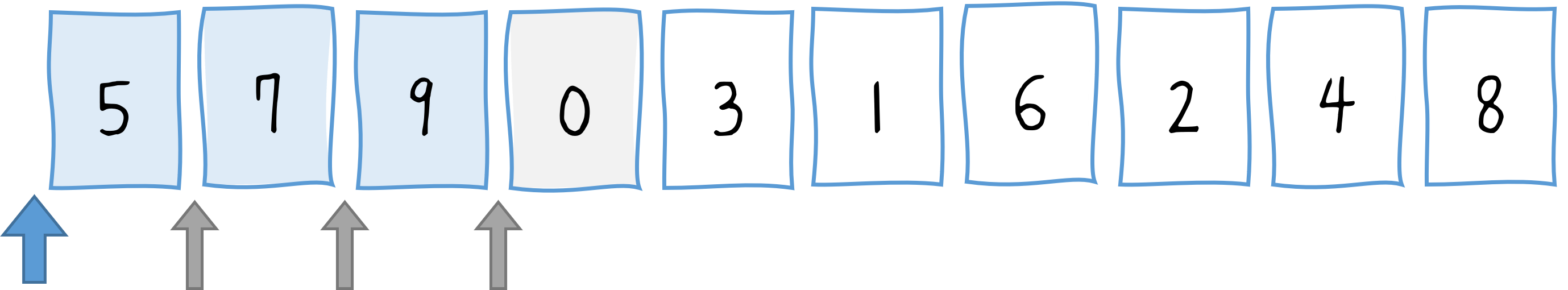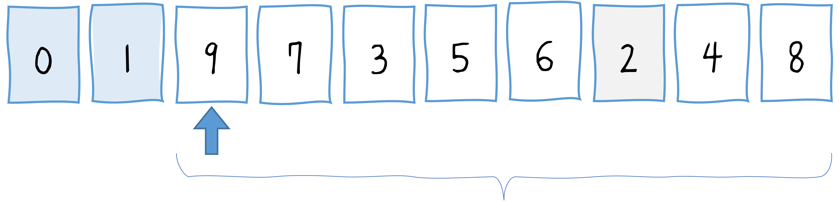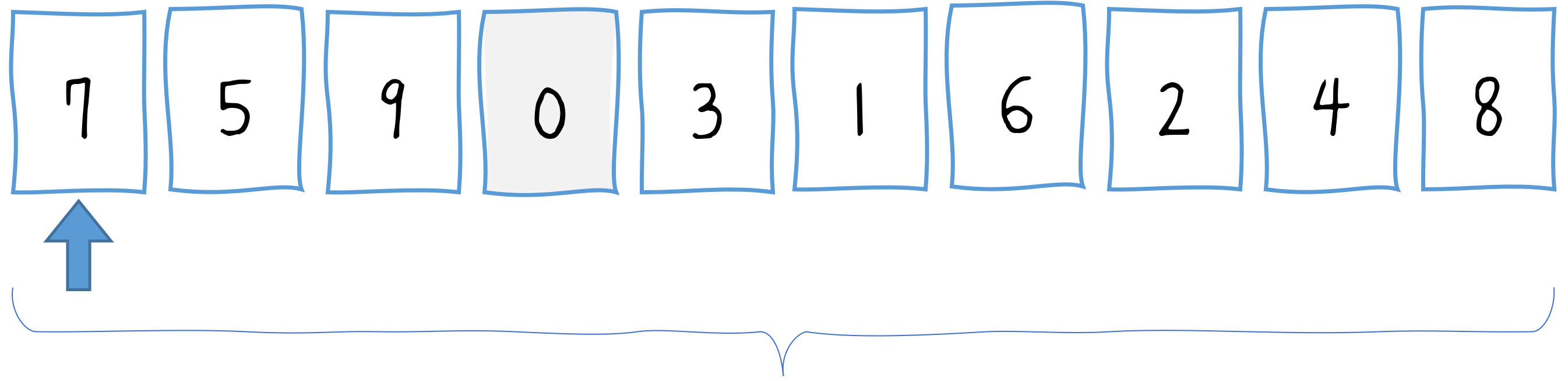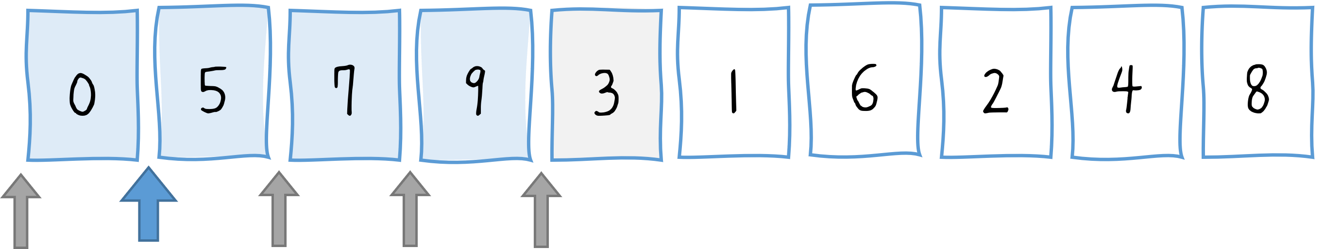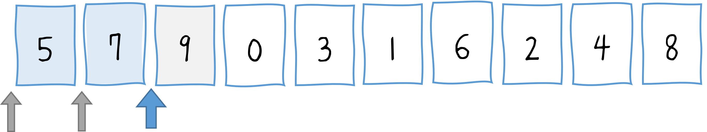 var array = [5, 7, 9, 0, 3, 1, 6, 2, 4, 8];