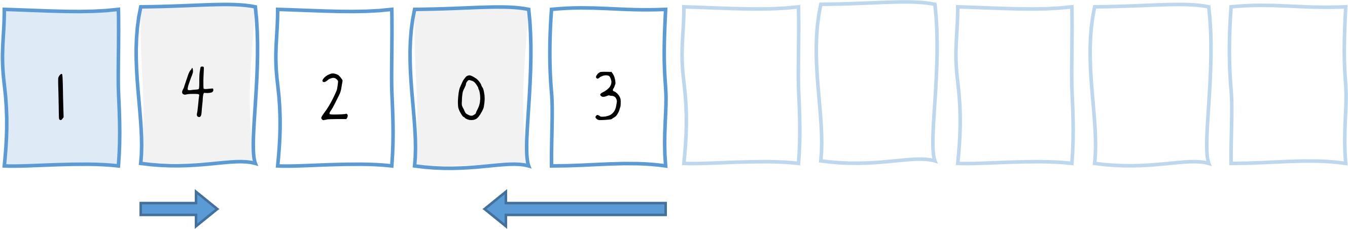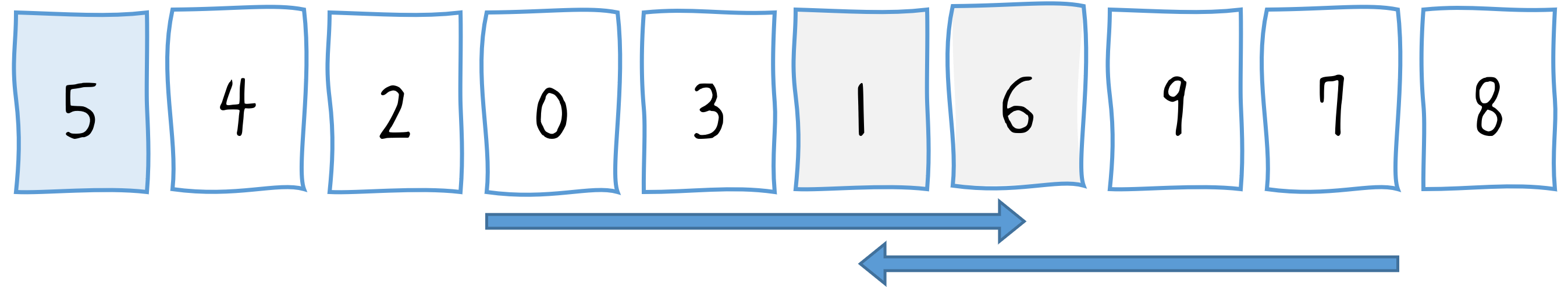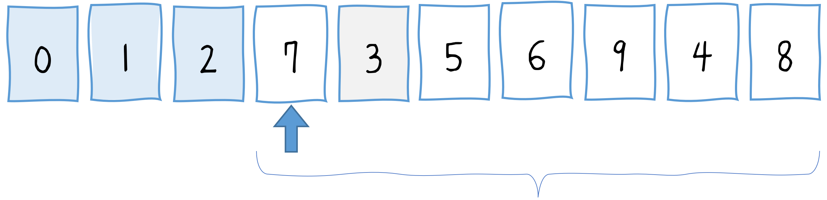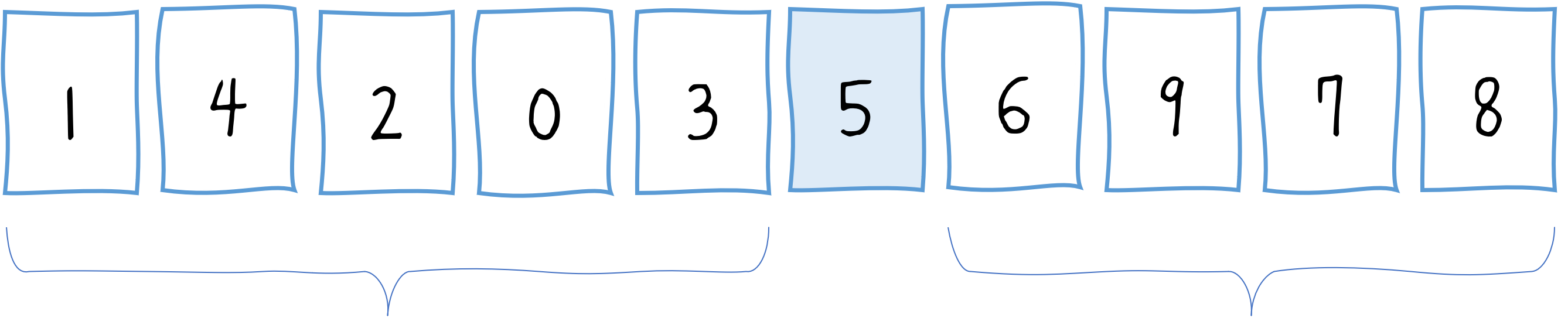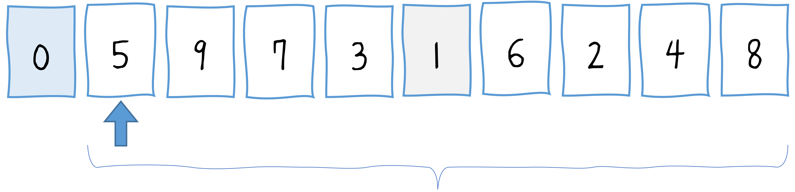 var array = [5, 7, 9, 0, 3, 1, 6, 2, 4, 8];