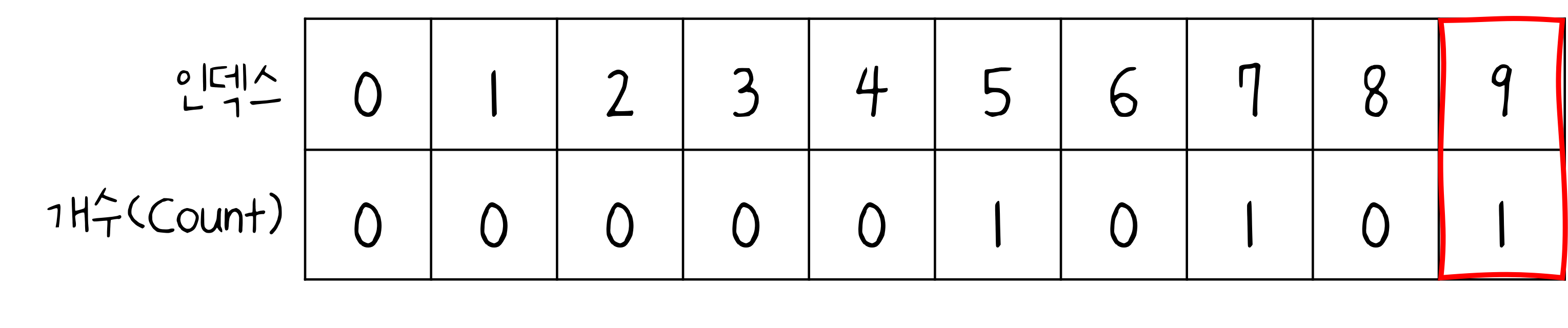 [Step 0] 가장 작은 데이터부터 가장 큰 데이터까지의 범위가 모두 담길 수 있도록 배열을 생성